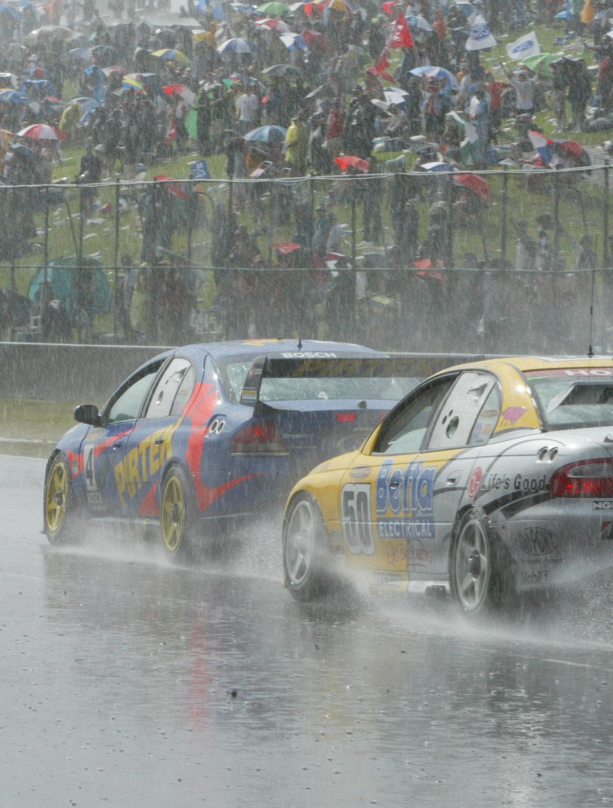 Marcos Ambrose sealed the 2003 title at Eastern Creek, with the final race of the season ending in a downpour.