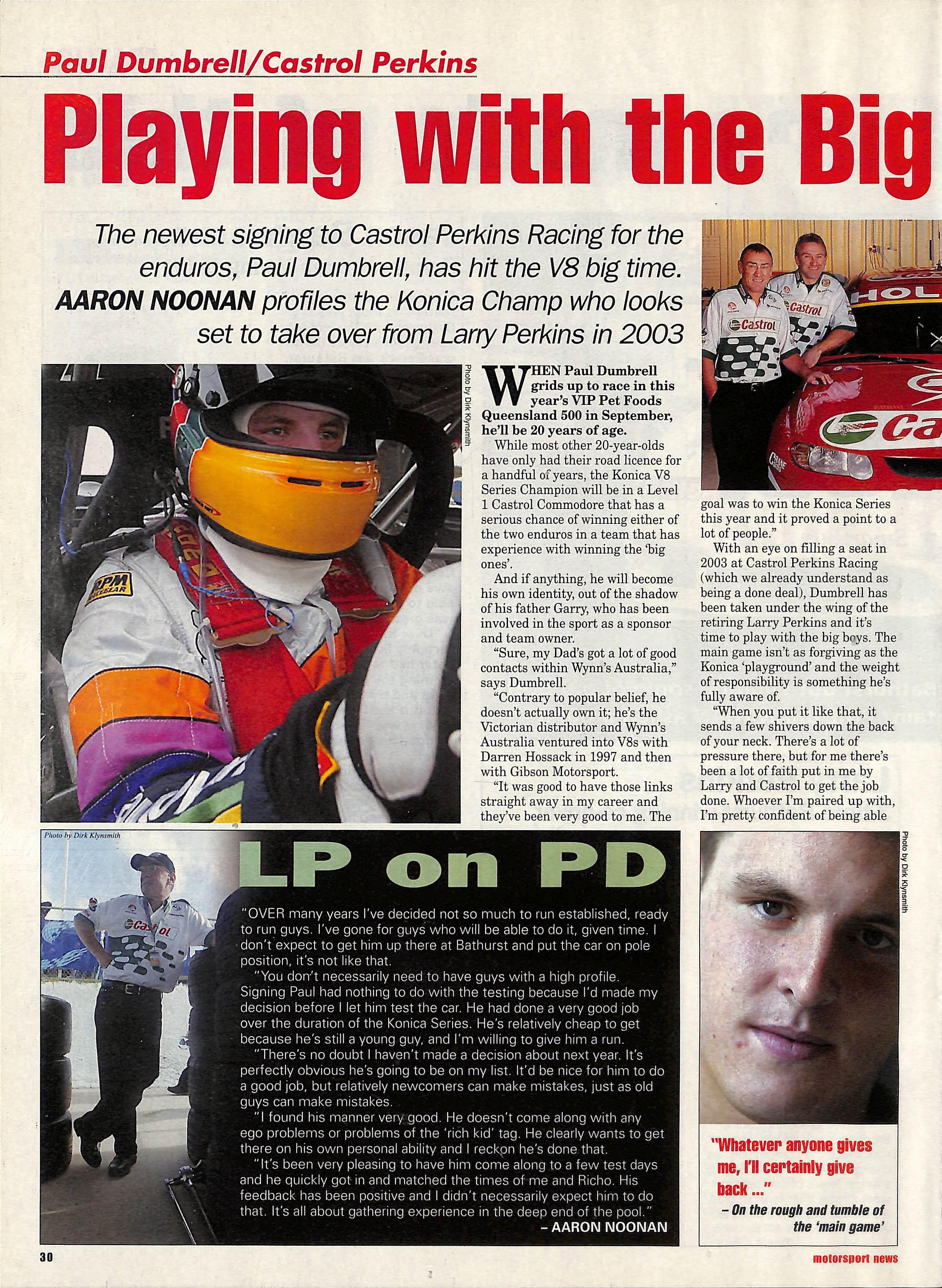 The West Australian ended speculation that he would switch teams for 2003 by signing with Garry Rogers Motorsport for a further two years to include the 2003 and 2004 seasons. «