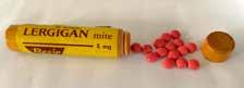 Til sidst lidt sjov nostalgi fra mine gemmer: Lergigan mite fra firmaet Recip Promethazin 5 mg. Fra før blisterpakningernes tid! Røret er af træ og med skruelåg.