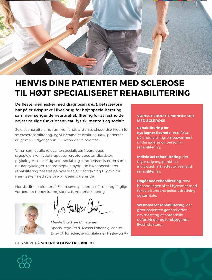Sclerosehospitalerne rummer landets største ekspertise inden for scleroserehabilitering, og vi behandler omkring 2000 patienter årligt med udgangspunkt i netop deres sclerose.