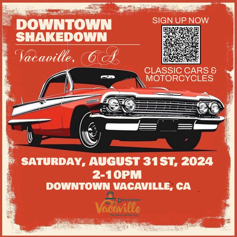 VACAVILLE’S DOWNTOWN SHAKEDOWN CLASSIC CAR & MOTORCYCLE SHOW IS NOW ACCEPTING APPLICATIONS! (CARS, MOTORCYCLES, FOOD & RETAIL VENDORS)