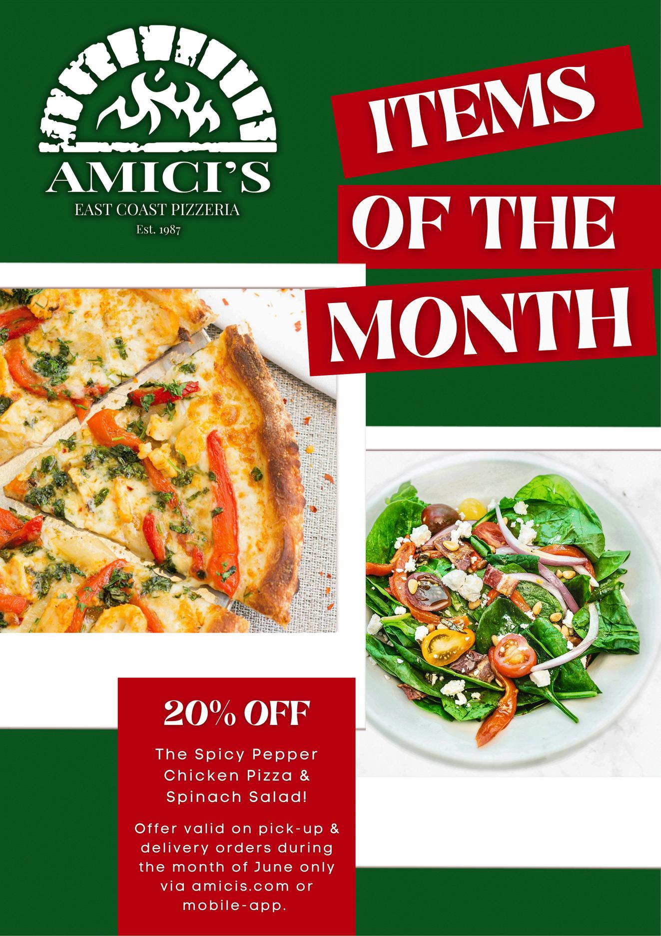 21. Amici’s East Coast Pizzeria Items of the Month