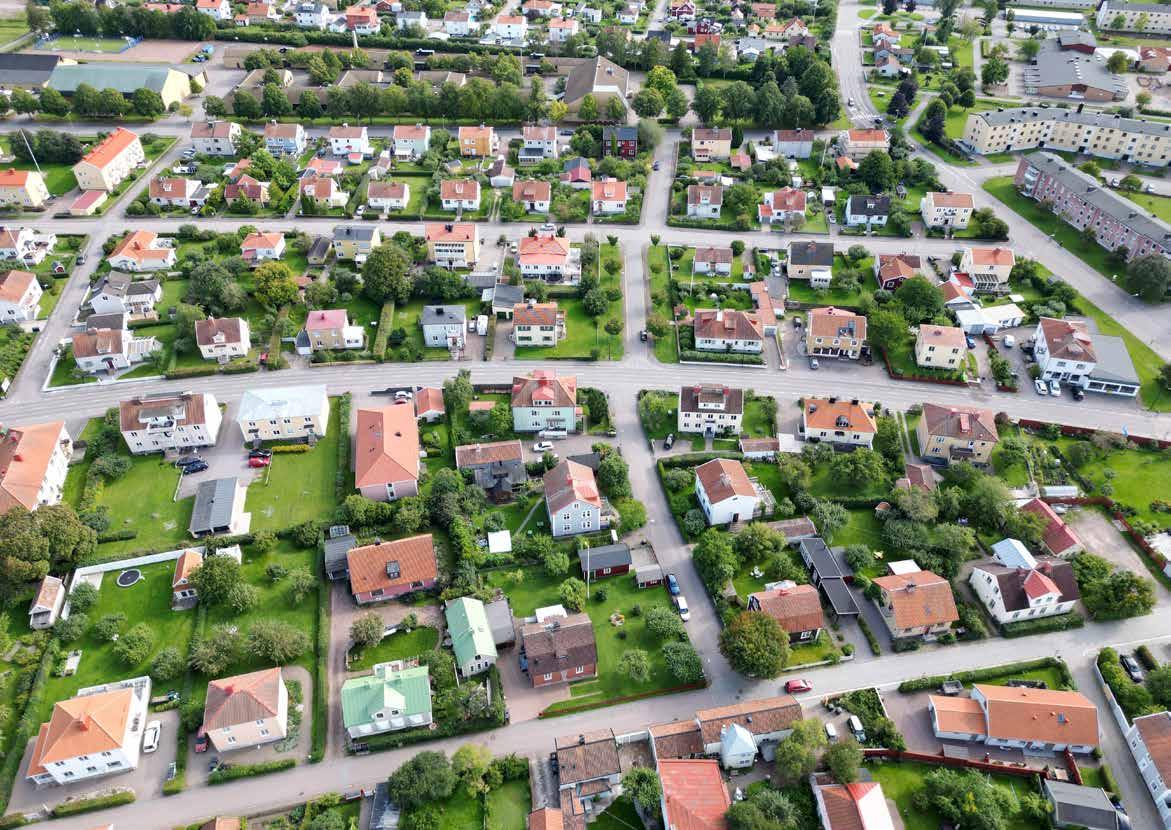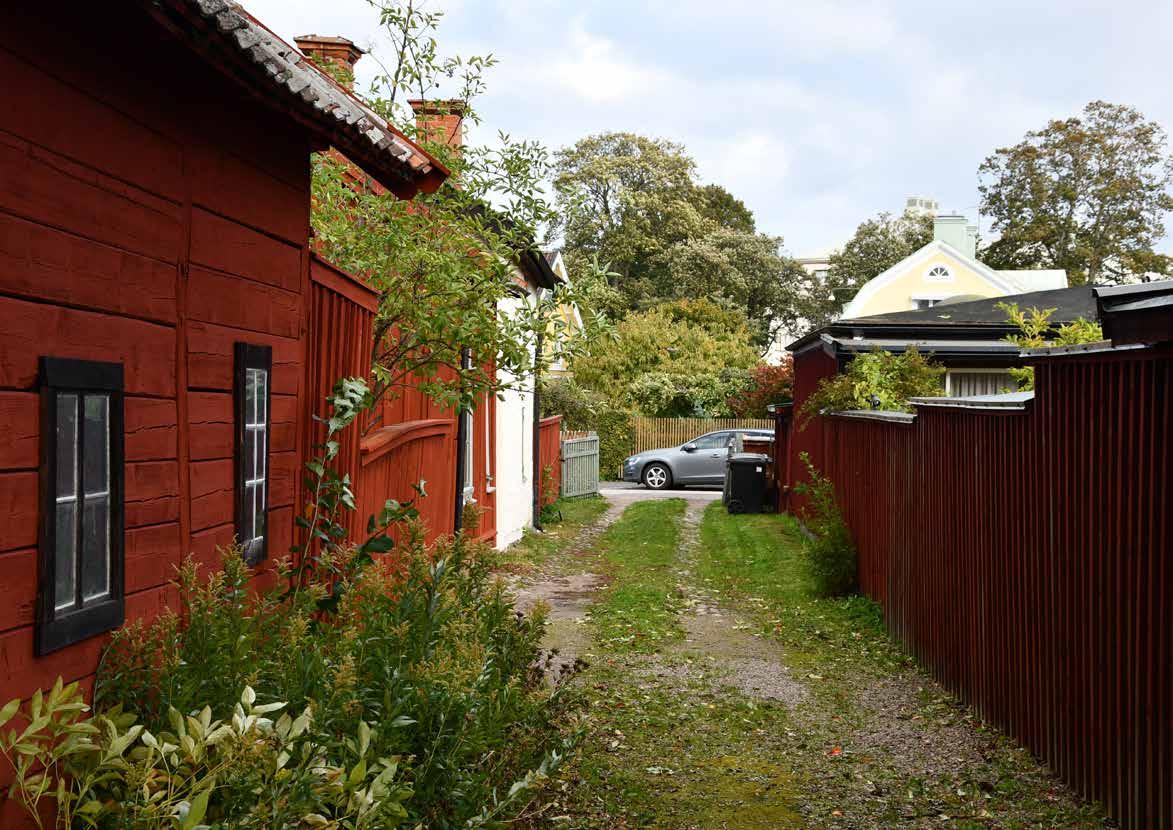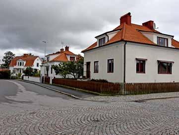 • Arbetarbostäder av enhetlig egnahemskaraktär med uthus och små trädgårdar.