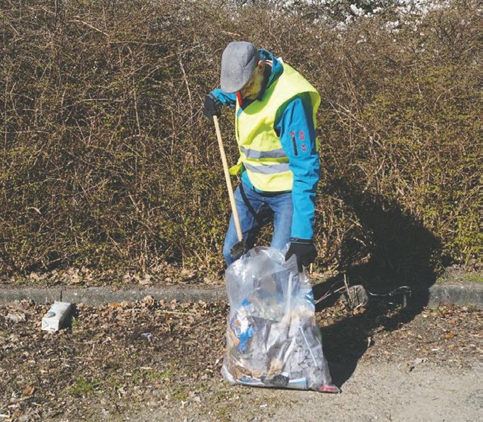 pladser og grøftekanter. Klokken ti var der ved Vadum Hallen udlevering af affaldssække handsker og gule sikkerhedsveste til indsamlerne, der derefter fordelte sig på 15 forskellige ruter rundt om i byen. I øvrigt i godt humør – på en solbeskinnet – men lidt kølig forårsdag.
