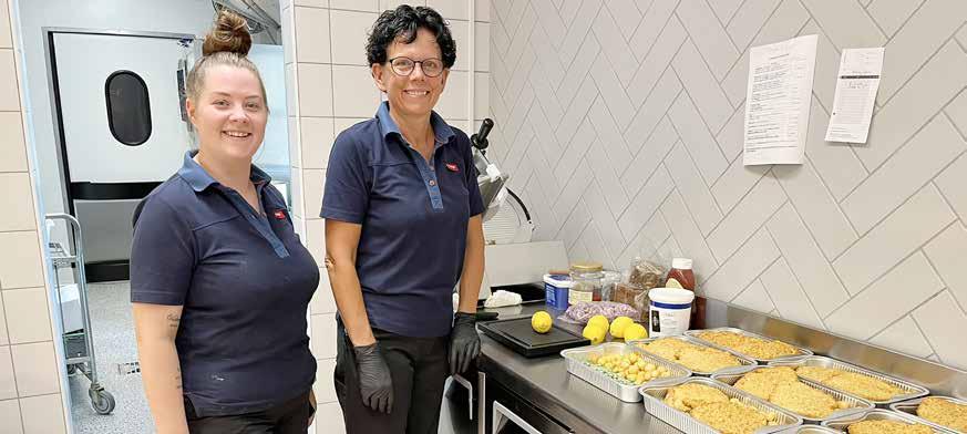Køkkenet på “Skytten”. Nr. 3 fra venstre er Inger Christensen. Nr. 2 fra højre er Ole Christensen.