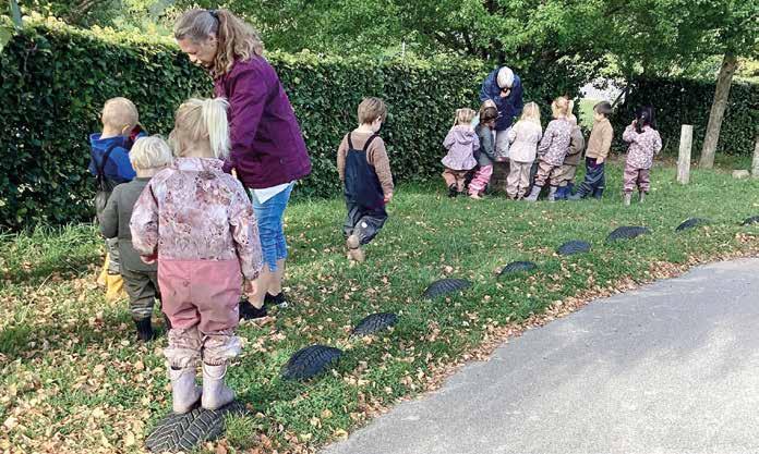 rundt på legepladsen, mens en stue gik ud i skoven for at spille naturbingo,
