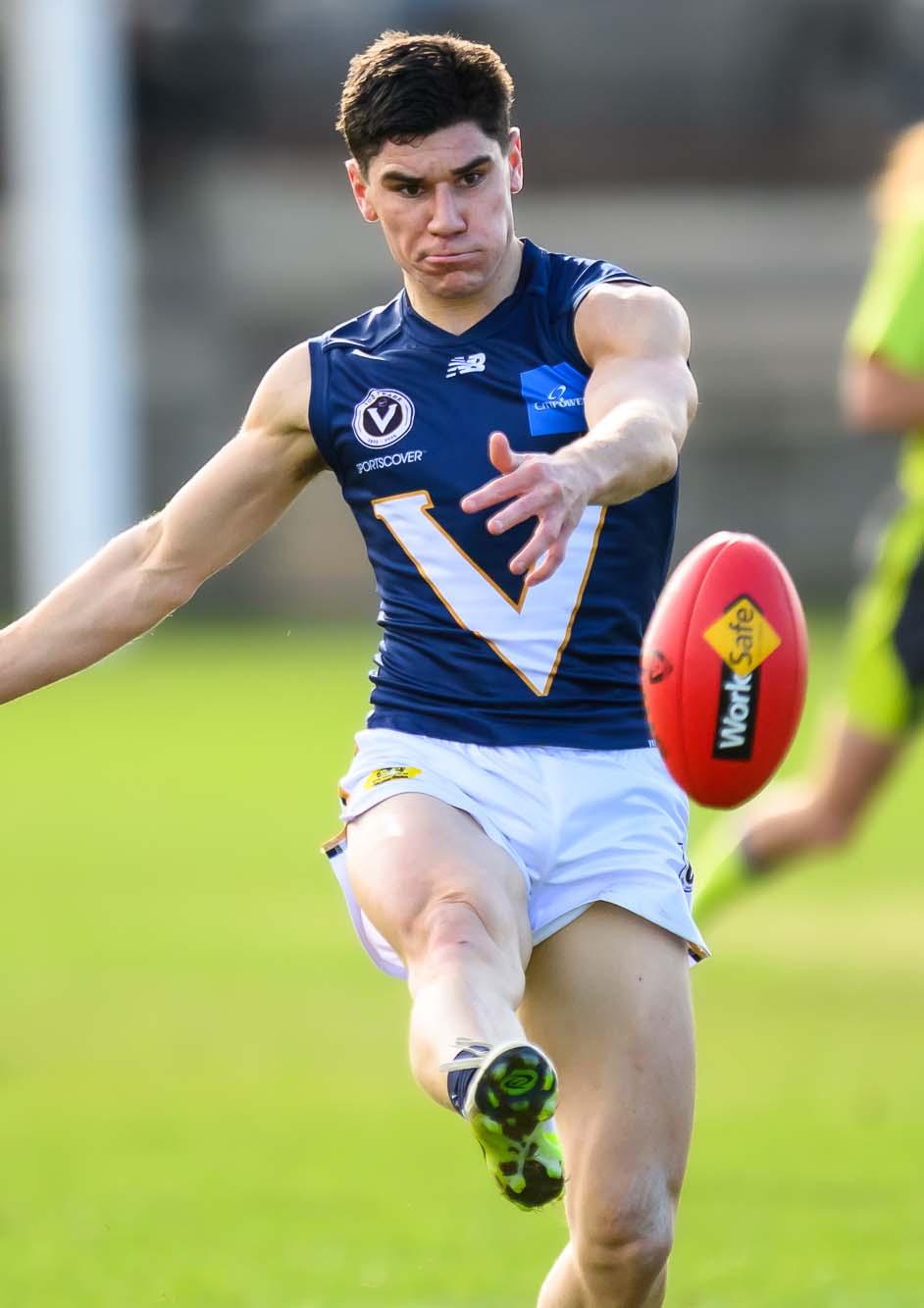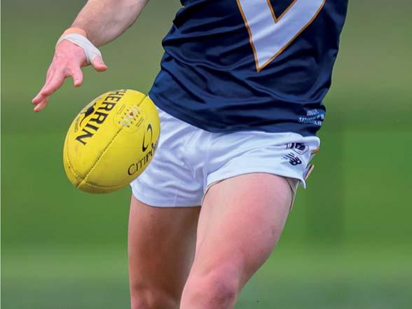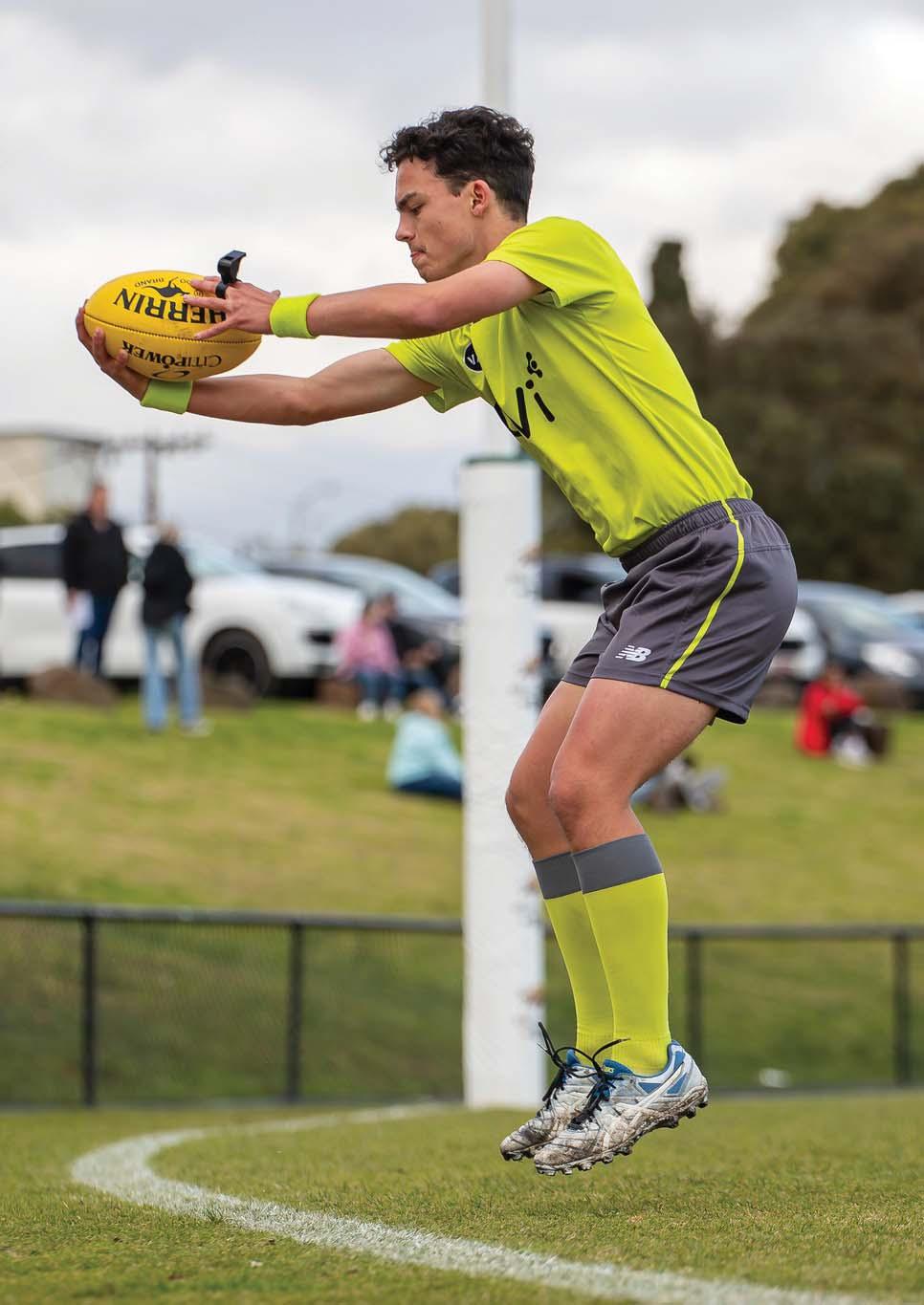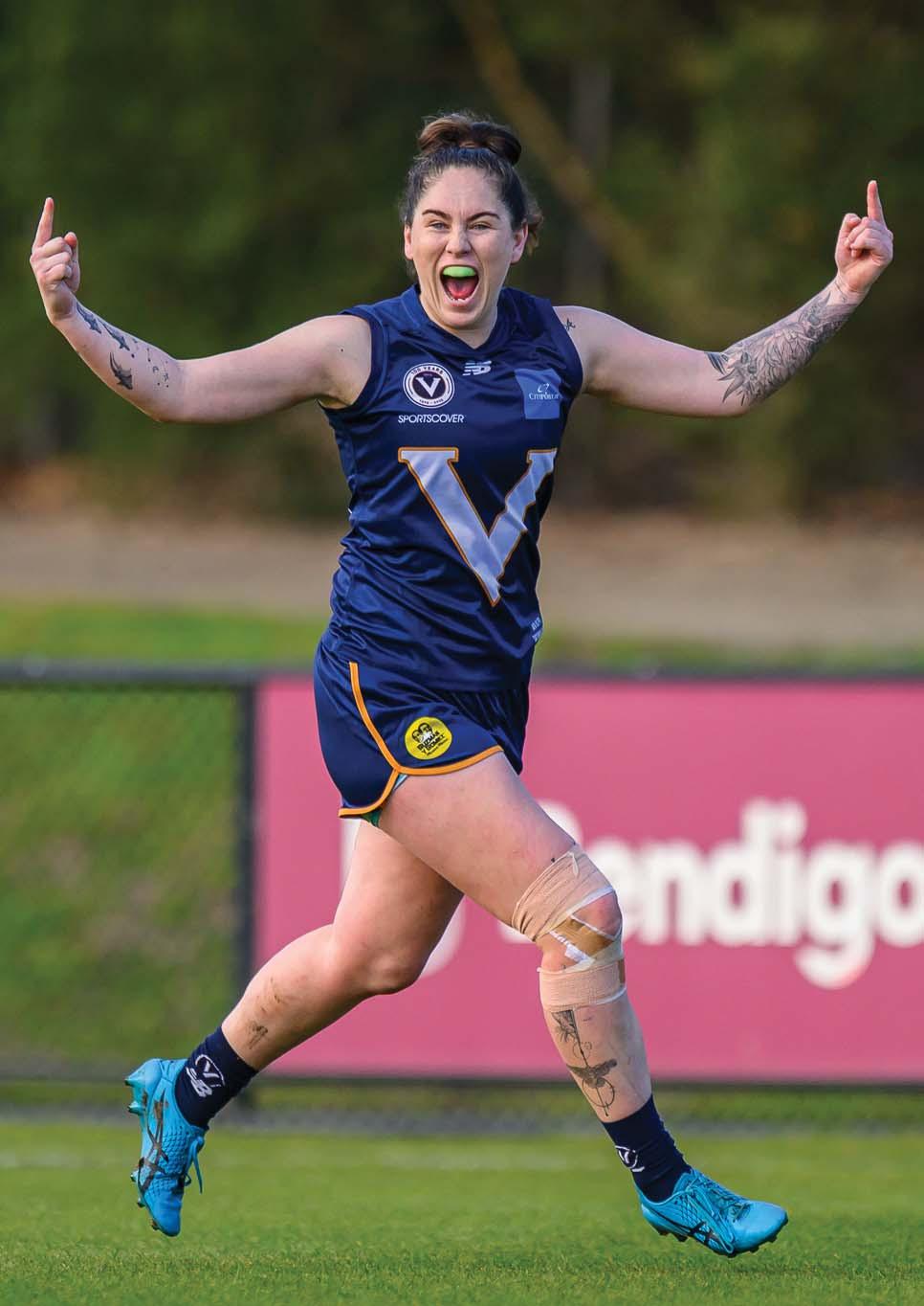 The two teams were going goal-for-goal in an even and entertaining contest. Dane Harvey’s long-range set-shot felt short after being touched by the man on the mark, allowing Charlie MacIsaac to pounce on the front-andcentre crumb to snap a clever goal at the 22-minute mark, as the Big V kicked clear once again.