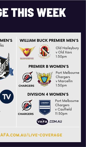 GOALS: Old Xaverians: J. Gangi 3, H. Woodhouse 3, C. MacIsaac 2, O. Duncan 2, N. Guiney 2, E. Kennedy 1, B. Scala 1, S. Ralph 1, M. Stavrou 1, W. Brusnahan 1, W. Goss 1, C. Holmes 1, C. Westcott 1