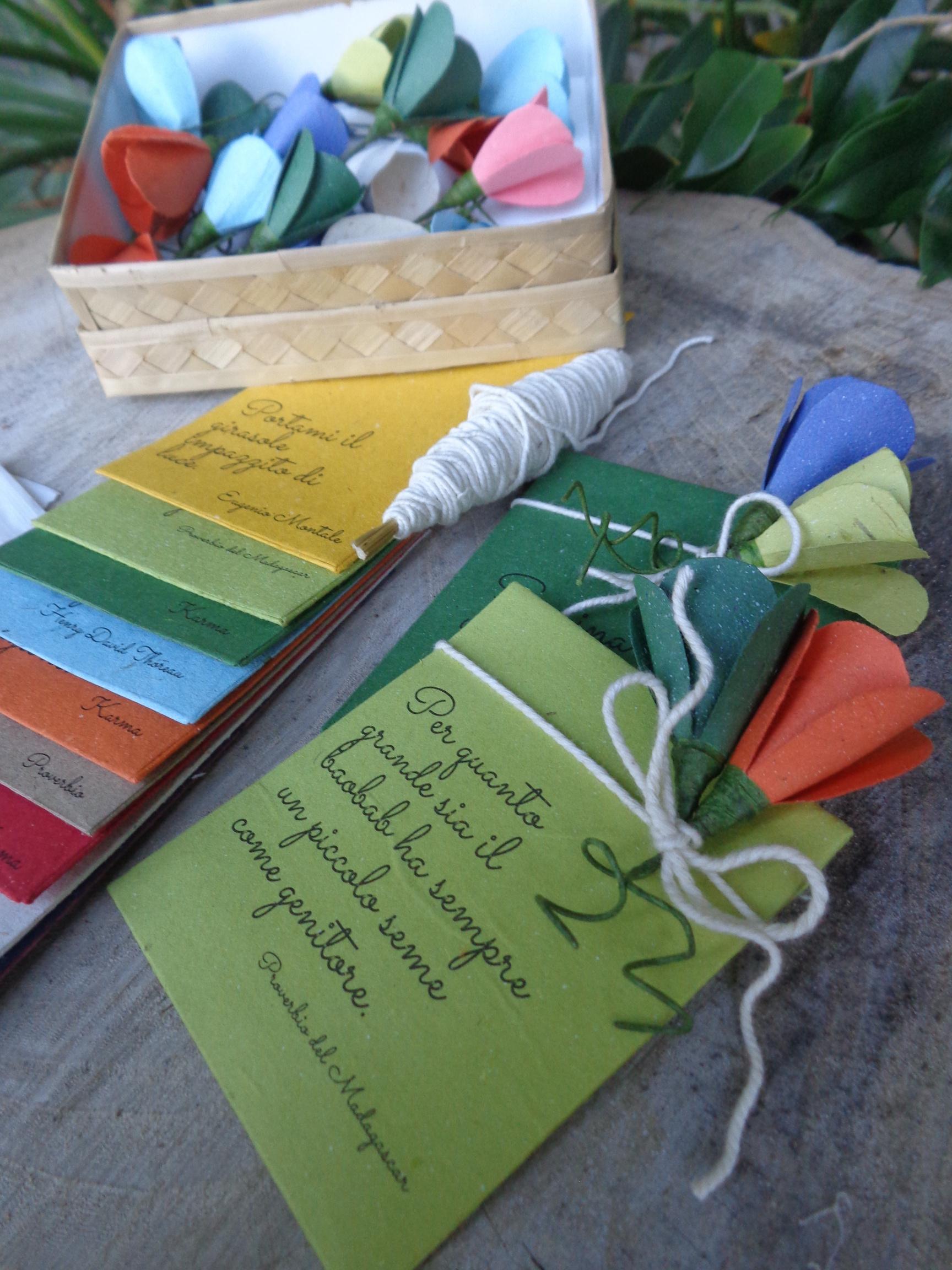 Sostenere il progetto Araliya significa dare continuità di lavoro alle donne, garantire una fonte di reddito per le loro famiglie e i loro figli; significa capire che dietro ad ogni fiore c'è la storia di una donna e della sua famiglia. Lasciatevi incuriosire in questa bellissima realtà e trovate il tempo di guardare quello che queste donne producono; troverete tutto quello che vi occorre per confezionare le vostre bomboniere, i regali e le ceste.