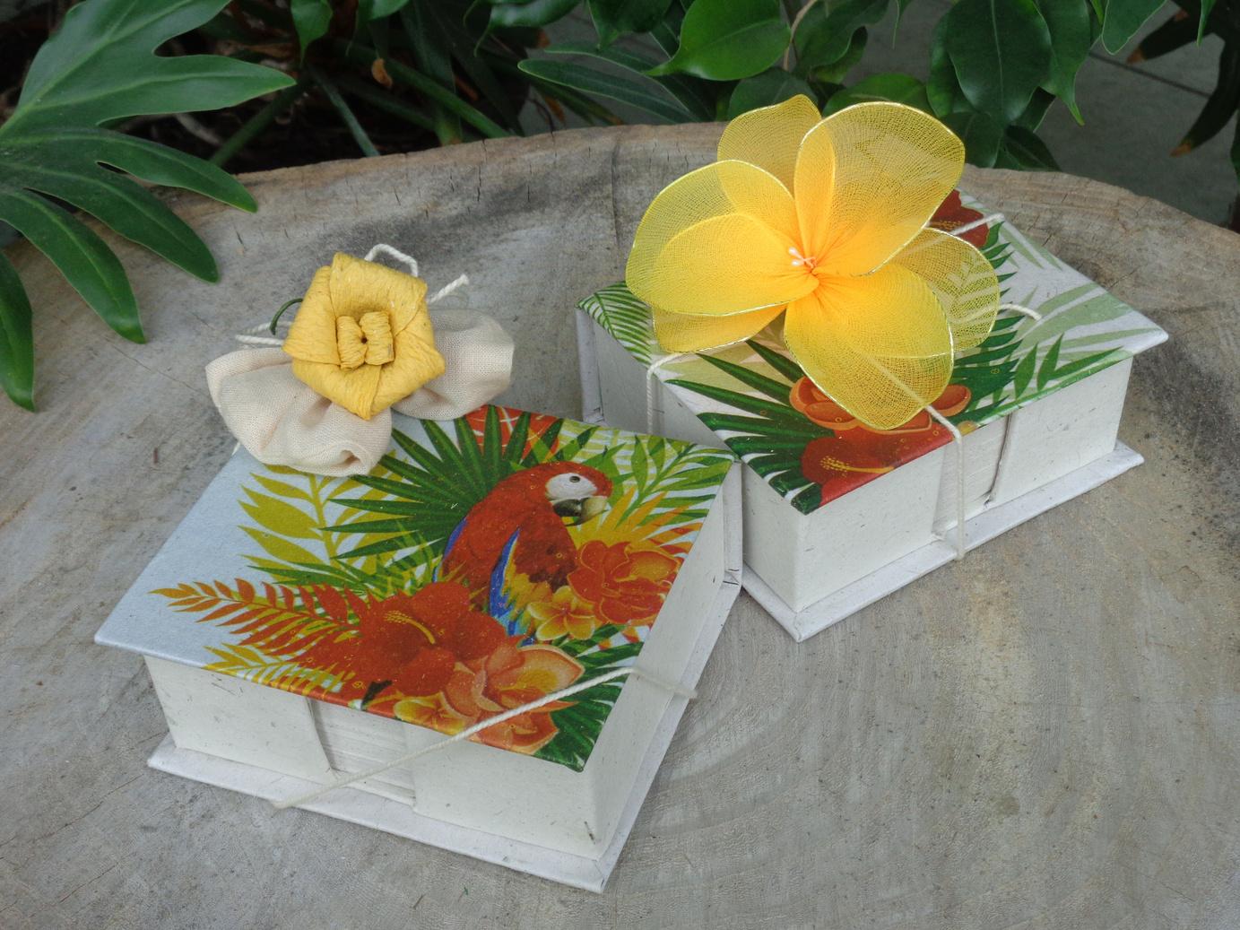 Araliya è il nome di una profumatissimo fiore dello Sri Lanka, ed è anche il nome di un gruppo di donne di Negombo (Sri Lanka ) che produce questi fiori, sacchetti e scatole per le confezioni delle bomboniere, Hanno una lavorazione completamente manuale, con materiali presenti sul territorio, dai semi alle spezie, dalle foglie alla corda di cocco.. .. alla cacca di elefante.