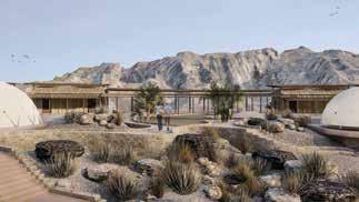 These massing gestures serve to completely open up the plateau, leaving generous space for the glamping domes to be placed along meandering paths, water bodies and green belts, serving as the heart of The Wahah.