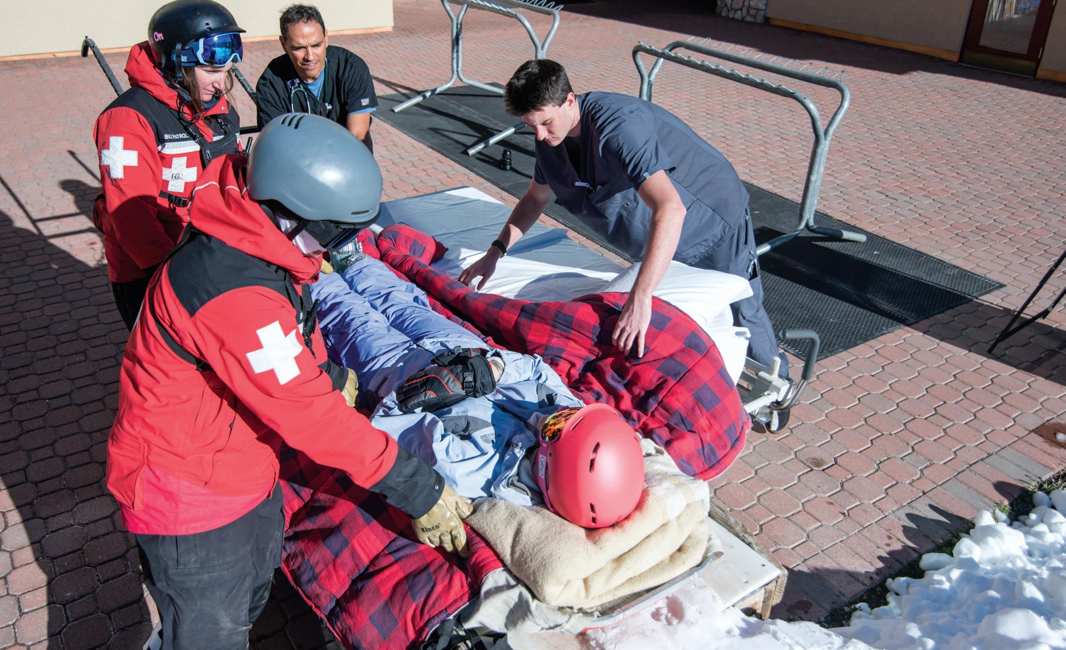 In the background is Caroline Whalen, a former Vail Ski Patroller who is now a PA-C at Colorado Mountain Medical.