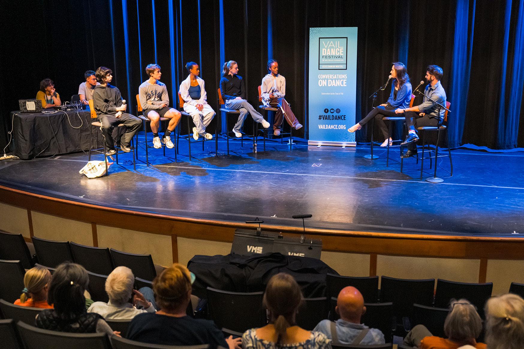 Conversations on Dance hosts Rebecca King Ferraro and Michael Sean Breeden welcome a small audience to enjoy interviews with Festival artists as part of their popular podcast series.