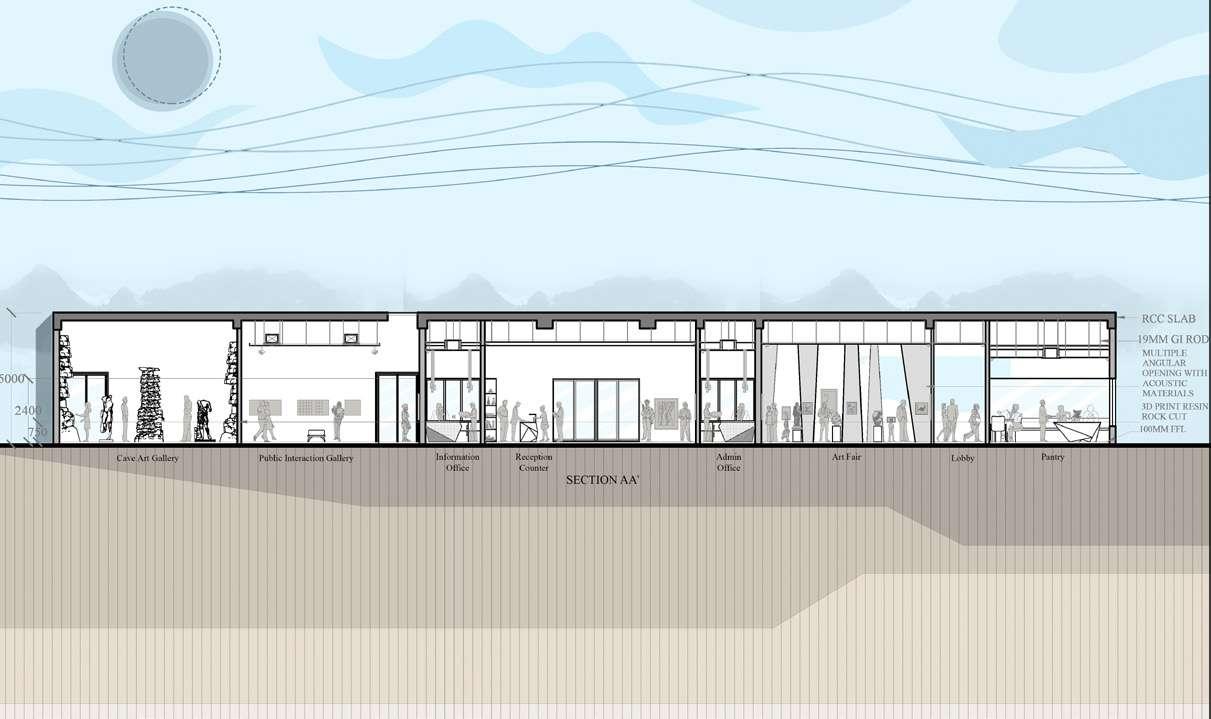 Buildings Prposed Site Main Road Road Greens N N Rich and Cultural Heritage Strategic Location and Connectivity Financial stability and Debt Servicing capability Reform Oriented Diverse industrial base Cosmopolitan Culture Poor Public Transport System Unmet need to maintain Heritage Structures Lack of credible mapping of underground utility network. Center for education and skill development • Scope for planned extension • Tourism sector • Growth in real estate industry Possibilities of industrial disaster Safety and Security issues Increased pressure on civic amenities Increased pressure on natural resources S W O T Simple Museum visitors can be categorized into three broad categories. Casual Visitors - People who move through a gallery quickly and do not become much involved in what they see. Cursory Visitors - People who show more interest in the museum experience and collections. Study Visitors - A monitory of visitors who thoroughly examine exhibitions with much more detail and attention. They are learners who will spend abundance of time in gallery, read text, labels and closely examine objects. Segregation of Zones Block Total Area - 9417 Sq.ft Further classified as private and public Creating Volumnes for better understanding and to flow in gallery Point The Point is a mark that shows th beginning of the work or end of it. It serves as the focus of visual and draws attention. A line in art is primarily a dot or series of dots. It is implied as in an action of the hand pointing up, the viewer’s eyes continue upwards. Shape is the creation when the end of line meets the start of the line. Shape is defined as having some sort of outline or boundary. Value refers to the lightness or darkness of space were the visitor connects to the harmony of space. An element of space by which positive and negative areas are defined or a sense of depth achieved by the artist. Line Value Shape Space The Idea is to connect Society, Art and Artist. The Design development is driven from the 6 Basic Principles of Art. As the principles of art represent how the artist uses the elements of art to create an effect and to help convey the artist’s intent. Public Sector Gallery Private Sector Art Museum & Gallery Exhibitions Interaction Out door Spaces Public Facilities Art Fair Workshops Learning through Observation Identifying the spaces Learning through observation Exposure Learning Learning by doing Learning through interaction Semi open space Cave Art Gallery Public Interaction Gallery Folk Art Gallery Office Curator Office Conference Room Server Room Staff Toilets Information Center Reception Area Administration Office Open Exhibhition Area Temporary Exhbhition Area Storage and Conservation Area Art Fair Pantry Area Moving Space Women’sWashroom Men’sWashroom Washroom for Disable Wokshop and Library Semi open space Cave Art Gallery Public Interaction Gallery Folk Art Gallery Office Curator Office Conference Room Server Room Staff Toilets Information Center Reception Area Administration Office Open Exhibhition Area Temporary Exhbhition Area Storage and Conservation Area Art Fair Pantry Area Moving Space Women’sWashroom Men’sWashroom Washroom for Disable Wokshop and Library Semi open space Cave Art Gallery Public Interaction Gallery Folk Art Gallery Office Curator Office Conference Room Server Room Staff Toilets Information Center Reception Area Administration Office Open Exhibhition Area Temporary Exhbhition Area Storage and Conservation Area Art Fair Pantry Area Moving Space Women’sWashroom Men’sWashroom Washroom for Disable Wokshop and Library Semi open space Cave Art Gallery Public Interaction Gallery Folk Art Gallery Office Curator Office Conference Room Server Room Staff Toilets Information Center Reception Area Administration Office Open Exhibhition Area Temporary Exhbhition Area Storage and Conservation Area Art Fair Pantry Area Moving Space Women’sWashroom Men’sWashroom Washroom for Disable Wokshop and Library Semi open space Cave Art Gallery Public Interaction Gallery Folk Art Gallery Office Curator Office Conference Room Server Room Staff Toilets Information Center Reception Area Administration Office Open Exhibhition Area Temporary Exhbhition Area Storage and Conservation Area Art Fair Pantry Area Moving Space Women’sWashroom Men’sWashroom Washroom for Disable Wokshop and Library Ticket Counter Baggage Counter Reception Area Reception Area Pantry Area Admin Office Public Washroom Center Hall Public Interaction Gallery Library and Workshop Area Conference Room Staff Washroom Museum Shop Folk Art Gallery Art Fair Curator’s Office Server Room Open Display Area Cave Art Gallery Semi Open Area Office Information Center Storage and Conservation Area Central Nucleus Place muse have center of interest Interactive and Unique Interactive and Unique Access for everyone Flexible seating places and comfort Relationship with context Contrast Gallery Planning