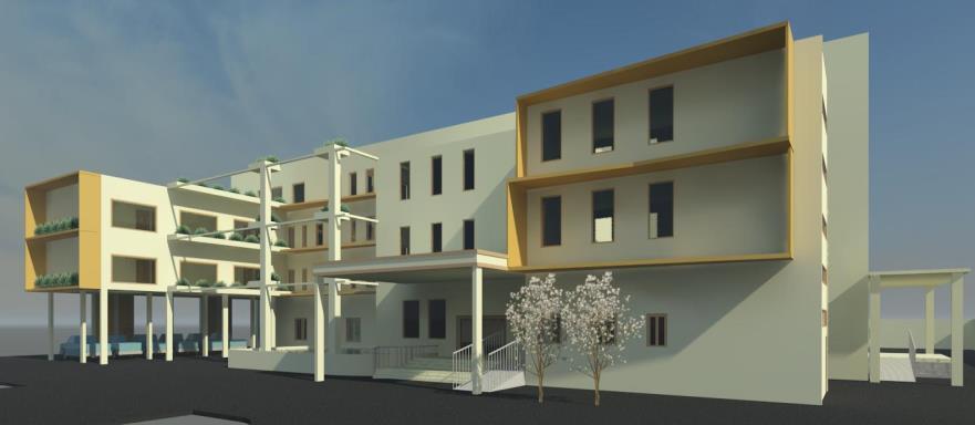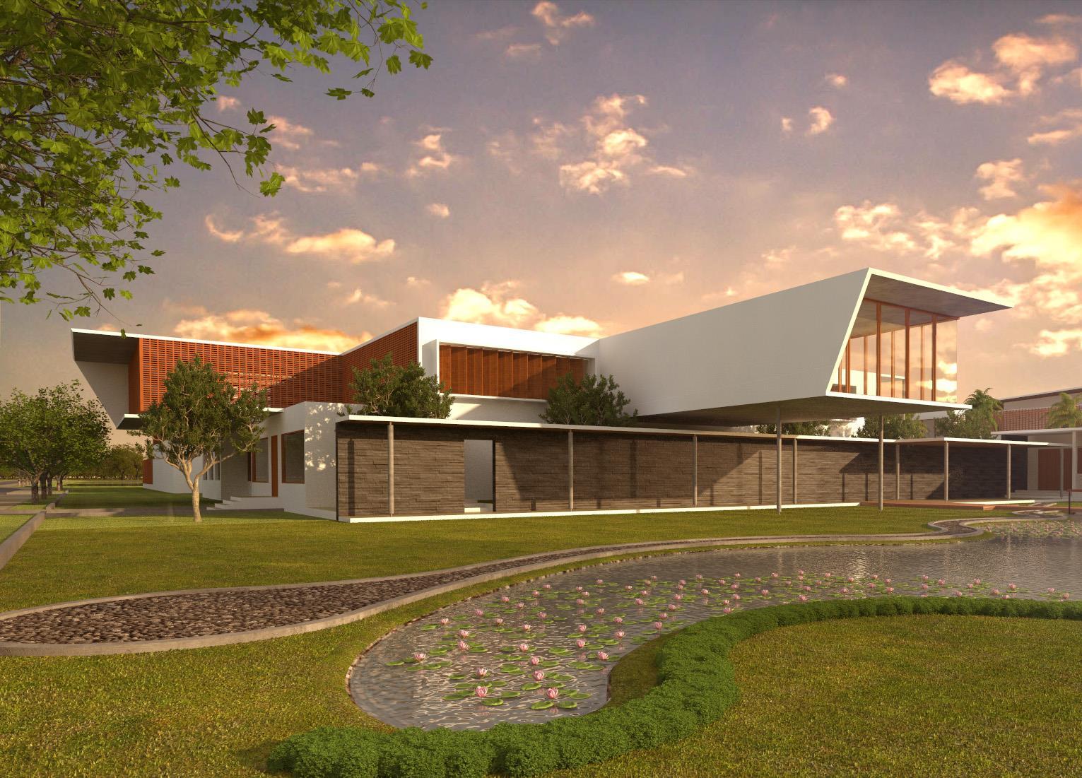 MY TAKE A combination of rectangles and play of projections , beams and columns to avoid the look and feel of hospital and give a homely feel by using water ponds and interesting elements