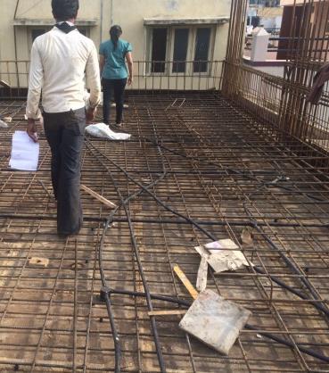 Marking/Checking of electrical points before casting slab, checking of Sunken slabs and sloped roof, unique structural design having inverted beams acting like walls in the next floor