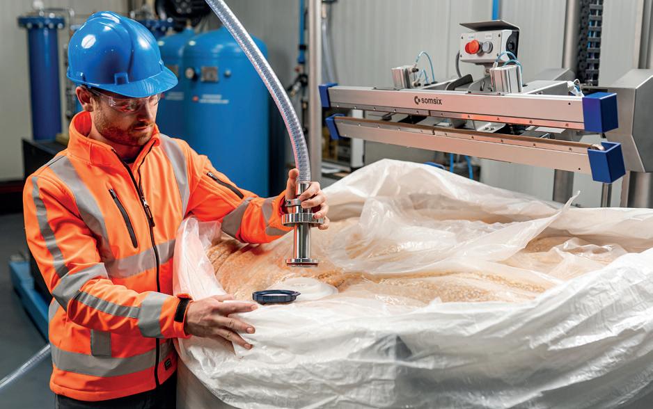 verbeteren daarmee aanzienlijk. Dit verstrekte polyethyleen lamineren we tegen een gewone polyethyleen. Daarmee ontstaat een materiaal met de eigenschappen van complexe laminaten, alleen nu van een monomateriaal. Het is recycleerbaar en draagt bij aan gewichtsreductie.”