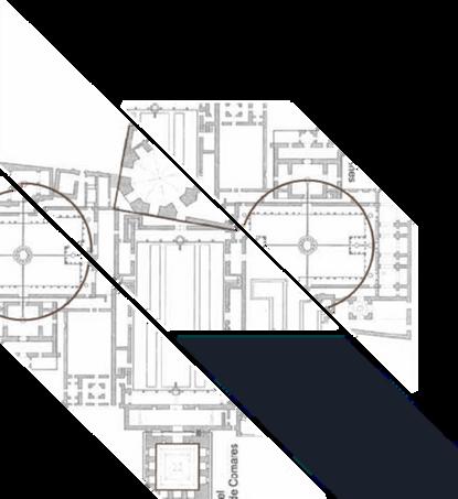 El eje de la planta simboliza el río Nilo que atravesaba Polinos: representa los acantilados de cada lado del valle Nilo Sala hipóstiola Sancia Sandorum Patio hipetro Obelisco Sala de barca