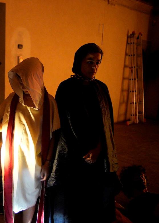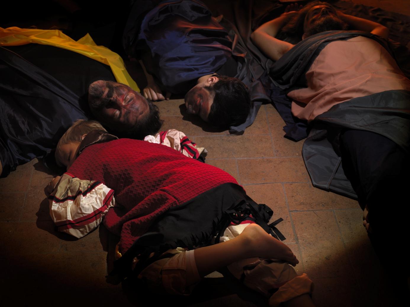 A Sansepolcro, ci ha accolti il piccolo oratorio della Chiesa di Santa Maria delle Grazie, anche detta Chiesa della Buona Morte, e non ci è parso secondario che, proprio lì, l'opera di riferimento fosse “La Resurrezione”, che si staglia nella sua brillantezza cromatica a meno di 50 metri da quel luogo, mentre noi spettatori venivamo immersi nel buio più totale, guidati da un bambino che ci portava per mano facendoci strada con una torcia, per incontrare una catasta di corpi di soldati addormentati a terra, fino a imbatterci negli occhi appuntiti di un altro bambino appollaiato su un altare, prima che un inquietante urlo squarciasse il silenzio e ci spingesse fuori da quel bivacco.
