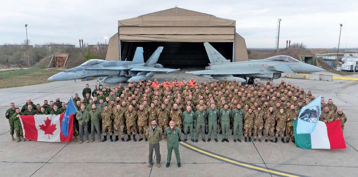 Évidemment, les chasseurs canadiens ne passent pas inaperçus audessus de Constanța, cette ville longeant la mer Noire. « Depuis 2014, avec le début de la police aérienne renforcée, le Canada a soutenu cette mission d’envergure et a mis en valeur un lien transatlantique solidifié au sein de cette Alliance, soulignant ainsi son engagement envers la sécurité collective », a conclu le lieutenantcolonel Latwaitis. Dans le cadre d’Op REASSURANCE, c’est la septième fois que les Forces armées canadiennes déploient une Force aérienne opérationnelle en Roumanie. La première fois étant en 2014 à Campia Turzii, puis à Mihail Kogalni