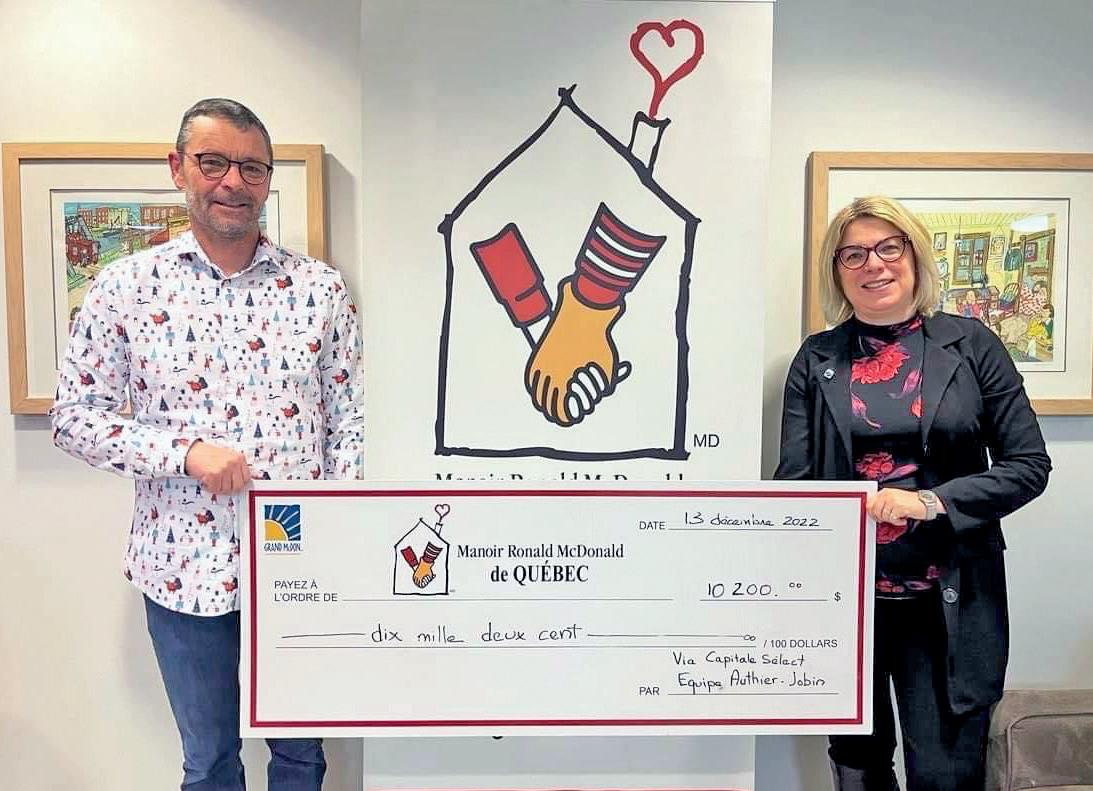 Soucieuse de redonner à la communauté, l’Équipe Authier-Jobin a remis au Manoir Ronald McDonald 10 200 $ en 2022 pour venir en aide aux familles d’enfants malades… et ça se poursuit en 2023 ! Pour