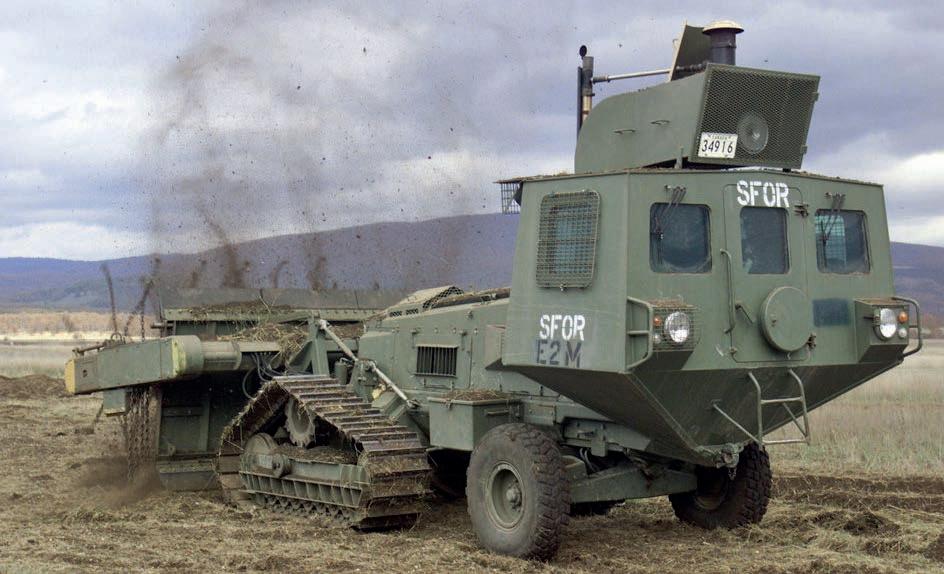 Aardvark Clear Mine Ltd, a specialist British company, developed the vehicle that takes its name: the Aardvark. This armoured vehicle meets an essential need: the elimination of antitank and infantry mines, which have been widespread in theatres of operation since the Second World War. On a daytoday basis, the Aardvark can handle all mines weighing 10 kg or less (i.e. the vast majority of mines). For example, French HDP antitank mines weigh around 7 kg, while Russian POM3s, which target personnel on foot (bouncing mines), weigh around 1.5 kg.