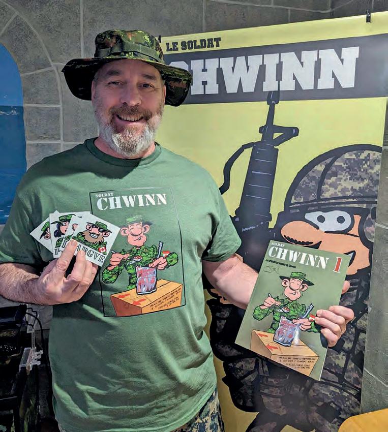 You may not know him, but his character does. His name is Denis Bisson. This veteran of the Canadian Armed Forces (CAF), a loyal member of Base Valcartier, has served in many units and been deployed several times. For Adsum, he looks back on his career and on his baby, the soldier's comic strip CHWINN.