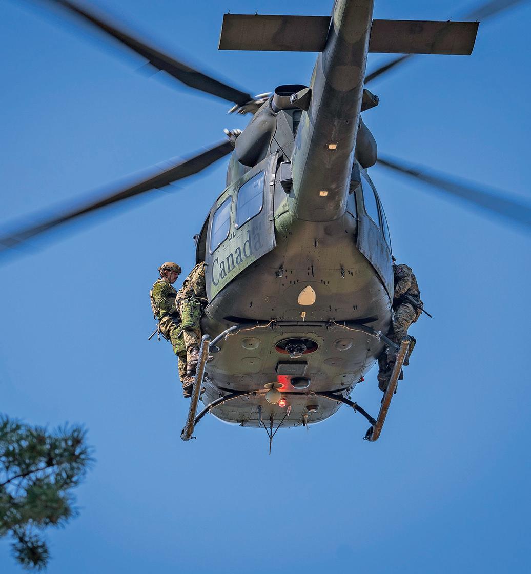 Cette tradition d’excellence et de service continue. En juin dernier, les premiers éléments de la brigade ont commencé leur déploiement en Lettonie pour les douze prochains mois dans le cadre de l’opération REASSURANCE. Le mois prochain, nous enverrons des renforcements pour une durée de six semaines en appui à nos forces déjà en place en Lettonie. Nous déploierons encore plus de personnel après noël au Moyen-Orient avec l’opération IMPACT ainsi qu’en Pologne, en Allemagne et au RoyaumeUni en appui à l’effort de guerre de l’Ukraine dans le cadre de l’opération UNIFIER. Nous devrons aussi être prêts à soutenir la mission HELIOS en appui aux forces de sécurité haïtiennes au printemps prochain, en plus de jeter les bases pour souscrire le début d’une autre montée en puissance de brigade à l’automne 2025 en vue de repartir en opération en 2026 et 2027.