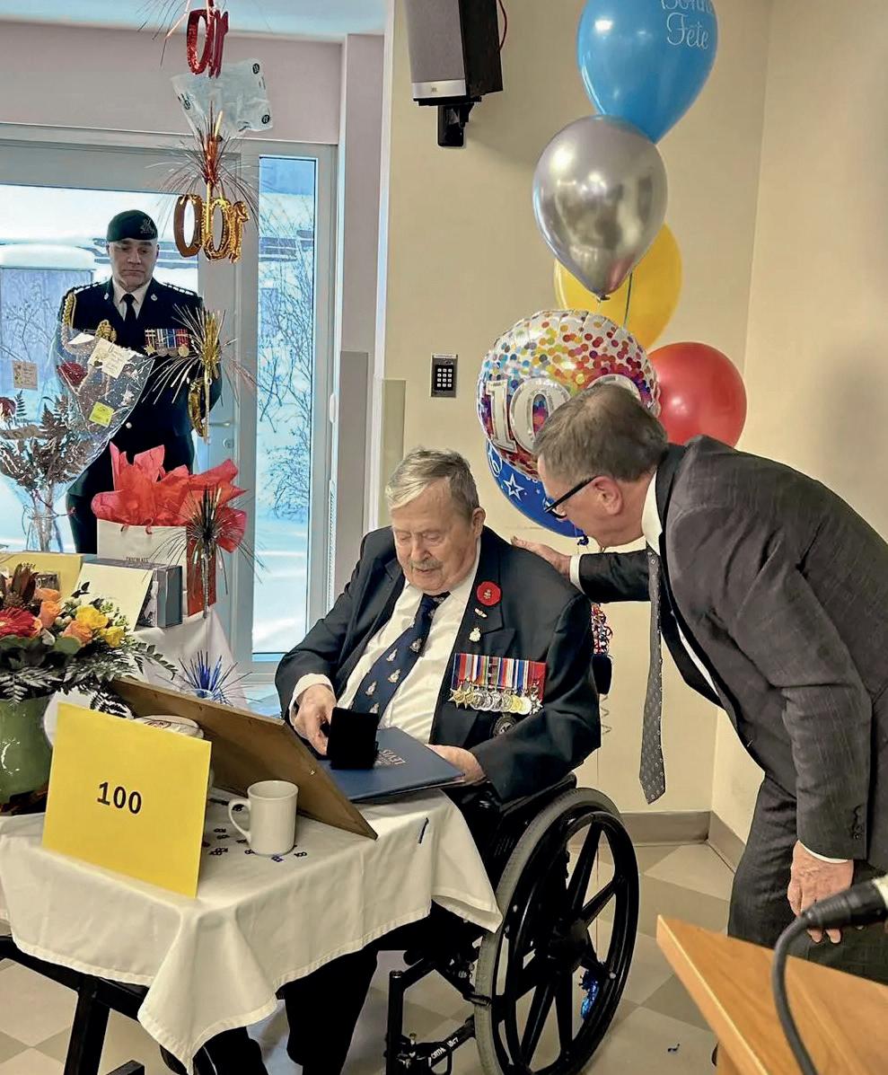 l'occasion de son 100e anniversaire, Jean Cauchy a notamment reçu des cadeaux de la part du maire de Lévis, Gilles Lehouillier. On the occasion of his 100th birthday, Jean Cauchy received gifts from the Mayor of Lévis, Gilles Lehouillier.