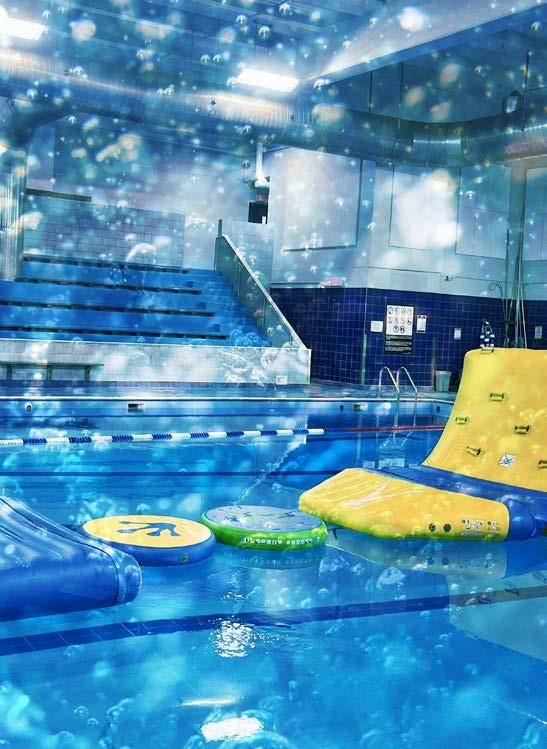 Structures gonflables installées dans le grand bassin 15 h à 17 h Centre des sports