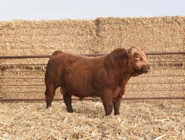 Calving ease sire, deep sided, pretty bull. Great disposition. Calving ease, milk, marbling, easy do, great feet. On the moderate side.