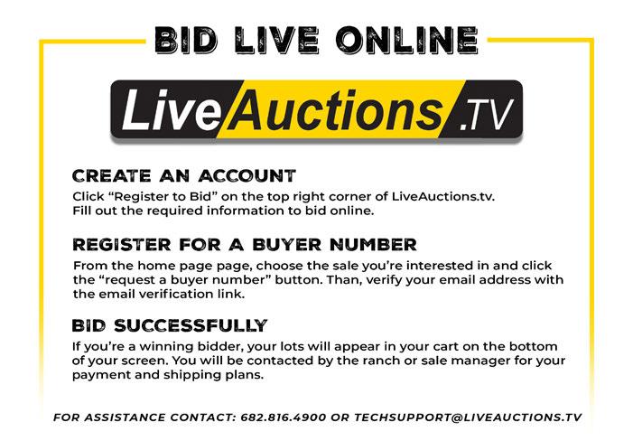 The sale will be broadcast online again this year with liveactions.tv and each and every bull will be run through the ring. It’s more work to do it that way but we know it makes for a much better sale experience -one that you have come to expect and appreciate. Coffee and rolls will be available the morning of the sale with a really nice Tri-Tip lunch at noon.