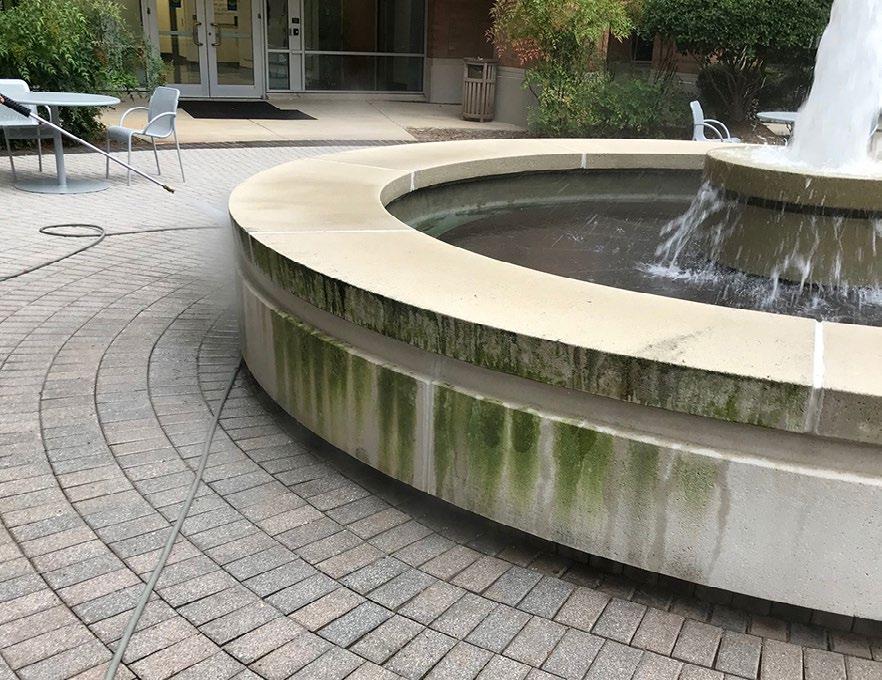 The frequency needed depends on factors including the location, weather conditions, and the amount of foot traffic. For buildings that appear new or have a low level of debris, we recommend pressure washing the facade every 3-5 years and walkways/ stairs at least annually.