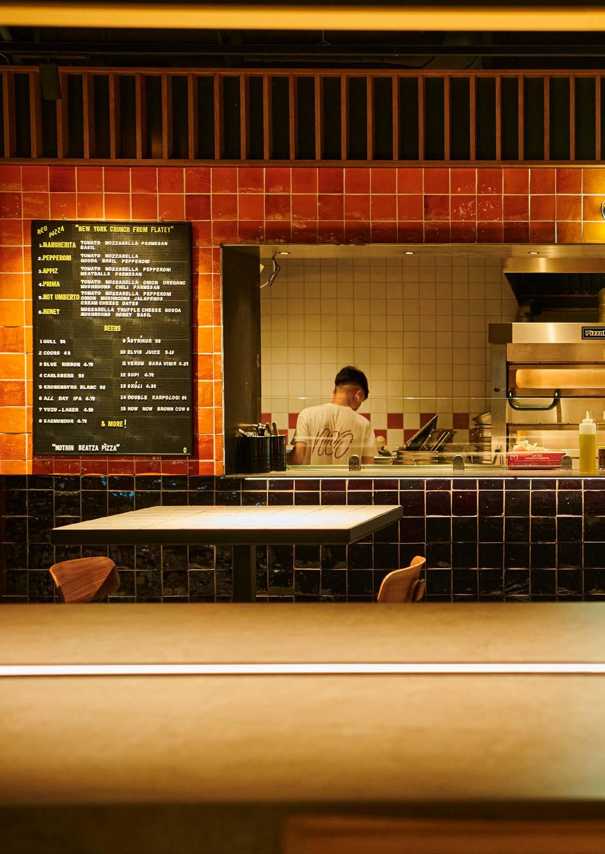 Hvað útlit staðarins varðar segir hann að stíllinn á „pítsubúllum“ í New York hafi verið haft til hliðsjónar; hvítar flísar og rauðar í mynstri. „Svo erum við með neokskilti í forgrunni.“