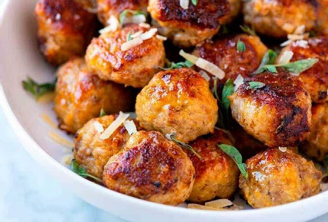 ½ bolli Parmesanostur nýrifinn Skreytið með ferskri steinselju og rifnum parmesan.