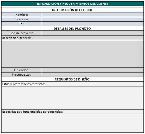 FORMULARIOS DE REGISTRO: información que brinden detalles sobre el proyecto, como una descripción general, cuestionarios con preferencias de acabados.
