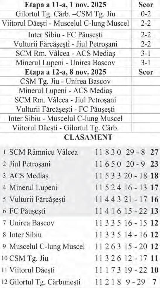 Etapa a 11-a a înregistrat victoria echipelor gazdă doar în meciurile de la R m Vâlcea și Lupeni