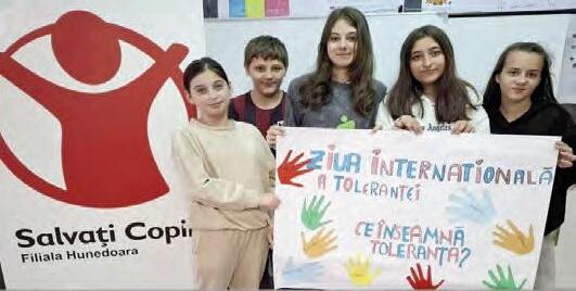 prevederile Convenției Națiunilor Unite cu privire la Drepturile Copilului, peste 1 500 000 de copii fiind incluși în acest timp în programe educative, de protecție și asistență medico-socială, de stimulare a participării lor în acțiuni de promovare și recunoaștere a drepturilor lor Proiectul ,,Și noi avem drepturi!" a fost inițiat de către Salvați Copiii, în aprilie1990, iar în cadrul filialei Hunedoara, din anul 1999, și-a propus să educe copiii în așa fel încât ei să fie conștienți că au drepturi dar și responsabilități, iar toleranța este una dintre ele Diana MITRACHE Ziua