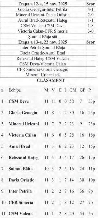 Minerul Uricani (antr. Mugurel Ciorâia) și-a făcut din nou bin e treaba, 2-0 cu Dacia Orăștie, c u Ov. Iepure (min. 43) și A. Harangozo (min. 80) c a marcatori.