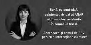 contribuabili și administrația fiscală Astfel, ANA va pu-tea răspunde în viitor la o gamă tot mai largă de întrebări din domeniul fiscal, simplificând accesul la informații fiscale pentru toți contribuabilii Chatbot-ul ANA este un pas important în direcția digitalizării administrației fiscale și reflectă angajamentul transformării ANAF într-o instituție modernă, deschisă, orientată către servicii publice de calitate și adaptată erei digitale