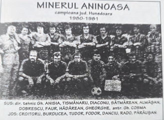 IUN IE 1981 Jucătorii Aninoasei termină en fanfare pe teren propriu, spre deliciul miilor (!?) de spectatori spulberă cu 6-1 în ultima etapă pe Preparatorul Petrila Spune cronicarul Teodor Trifa de atunci: „Conducând detaşat în clasamentul campionatului judeţean de fotbal, gazdele ultima întâlnire a actualei ediții, o echipă formată în mare parte din jucători de rezervă Ei au demonstrat că rezervele se pot ridica la nivelul titularilor Încă de la început, aninosenii şi-au pus în dificultate adver-