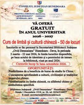 Densusianu” Hunedoara –Deva anunță, pe această cale, organizarea în continuare a cursurilor gratuite de limbă și cultură chineză și în anul universitar 2026 – 2027