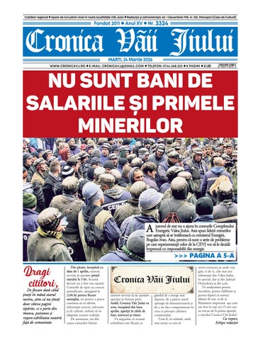 www cronicavj ro unde veți găsi, zi de zi, cele mai noi informații din Valea Jiului, în special, dar și din județul Hunedoara și din țară Vă mulțumim pentru încredere, pentru fidelitate și pentru faptul că sunteți alături de noi, zi de zi Rămânem împreună așa cum am fost în toți cei 15 ani care au trecut de la prima apariție a ziarului Cronica Văii Jiului! Cu respect, Echipa redacției