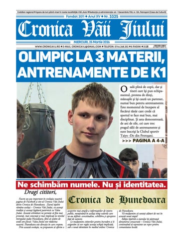 Facem un pas important în evoluția noastră: pagina de Facebook și site-ul Cronica Văii Jiului devin Cronica de Hunedoara Ziarul tipărit rămâne același – Cronica Văii Jiului, cu aceeași tradiție și aceeași legătură puternică cu Valea Jiului. Această schimbare ne permite să fim mai prezenți, mai conectați și mai implicați la nivelul întregului județ Hunedoara, fără să uităm de unde am plecat Valea Jiului este rădăcina noastră Hunedoara este direcția în care creștem Prin această evoluție, ne propunem să oferim o