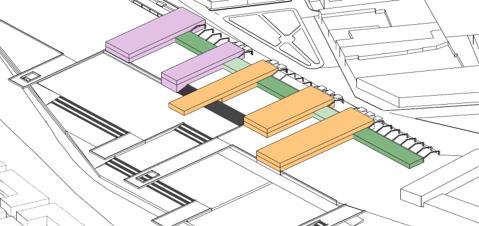 Volúmenes en eje transversal a la estación en relación a los ejes y ritmos
