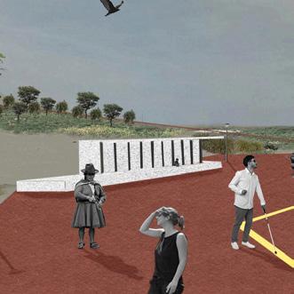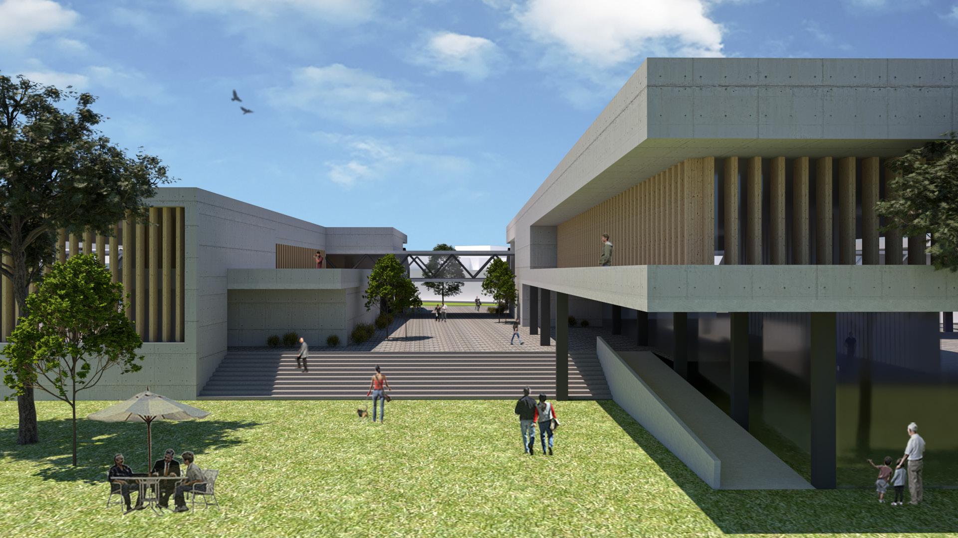 Eje que conecte ambos museos, estará rodeado de zonas para estar y vegetación, y direccionará a la plaza central la cual tendrá un anfiteatro