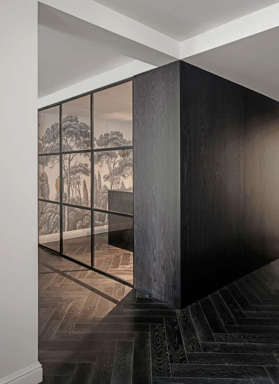 El mobiliario, fabricado artesanalmente a medida con la aportación de tejidos seleccionados, añade sofisticación a cada espacio, dispuesto sobre un elegante pavimento, diseñado también ex profeso y compuesto por distintos mármoles: caliza, negro marquina y travertino.