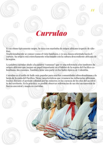 Currulao es el estilo de baile más popular para muchas comunidades afrocolombianas a lo largo de la costa del Pacífico. Tiene características que resumen las influencias africanas traídas durante el período colonial por los mineros en las cuencas de los ríos del occidente del territorio. En la práctica, es posible observar referencias de un rito sacramental de fuerza ancestral y magia en currulao.
