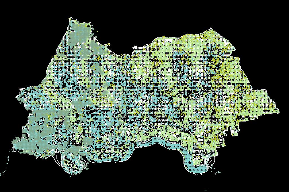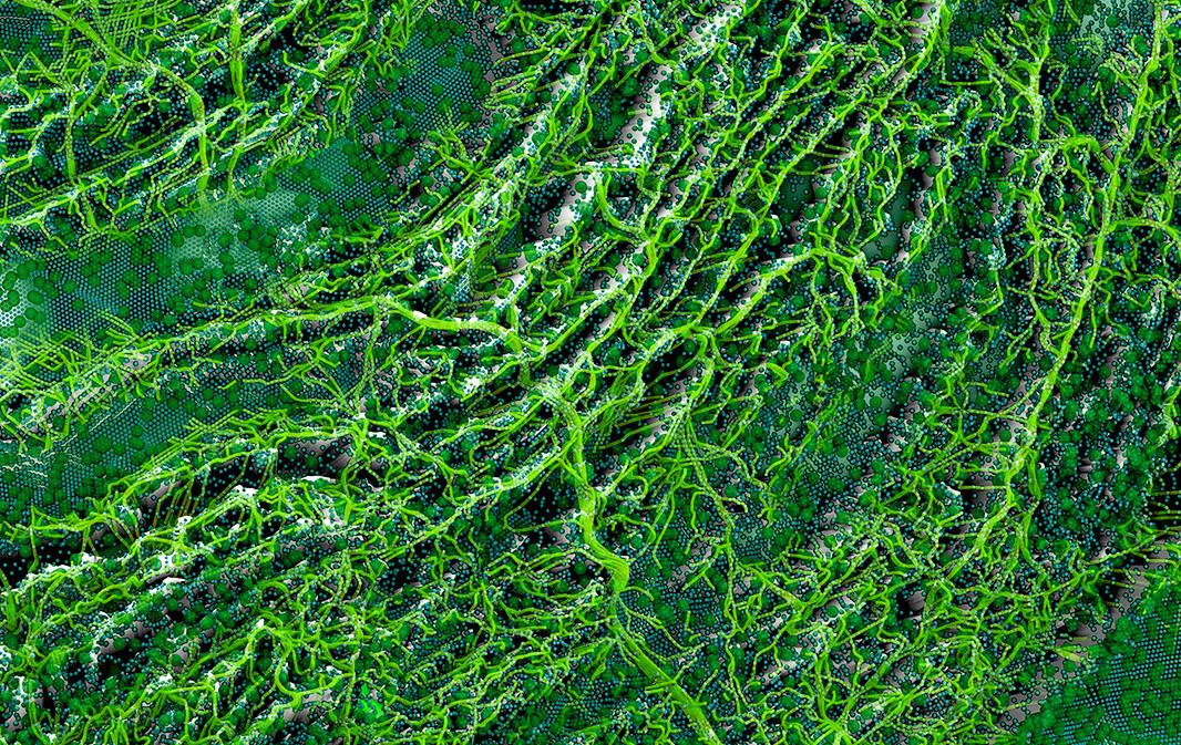 The project proposes a decentralised biological energy infrastructure composed of readily found photovoltaic plant species, such as microalgae and moss. East London is utilised as a protypical site of implementation, where the chosen biomaterials' propagation factors are analysed in order to determine starting and end points for a new energy network. The network is then translated via machine learning. This translation integrates the new bioenergy system by adjusting the existing city fabric. This infrastructure consists of production areas adjacent to aquatic and woodland typologies, and consumption/extraction areas adjacent to urban areas. The structure generates energy while creating both accessible space for humans and animal habitats in London.