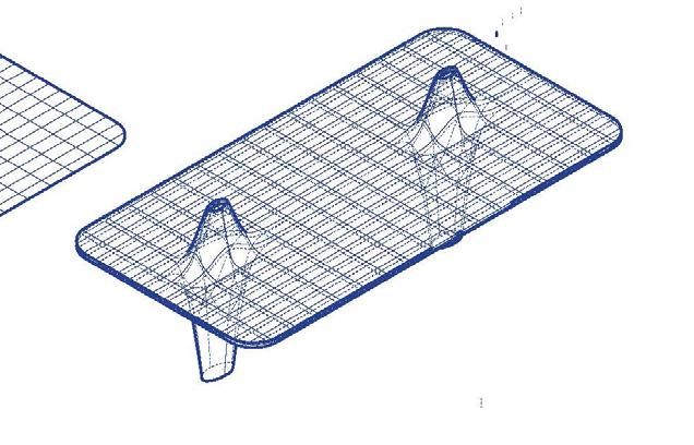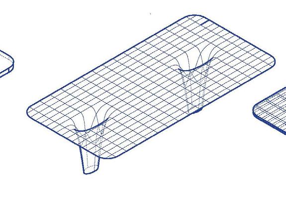 Form finding diagram 1 acrylic / mdf top 2 vacuum formed / 3D printed leg caps 3 welded metal frame and base Acrylic grid and mdf solid top with openings